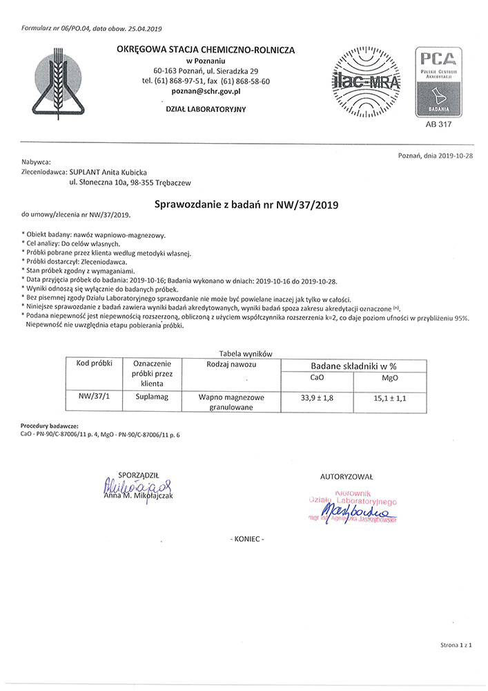 Suplamag - nawóz wapniowo-magnezowy granulowany CaO + MgO min 45%